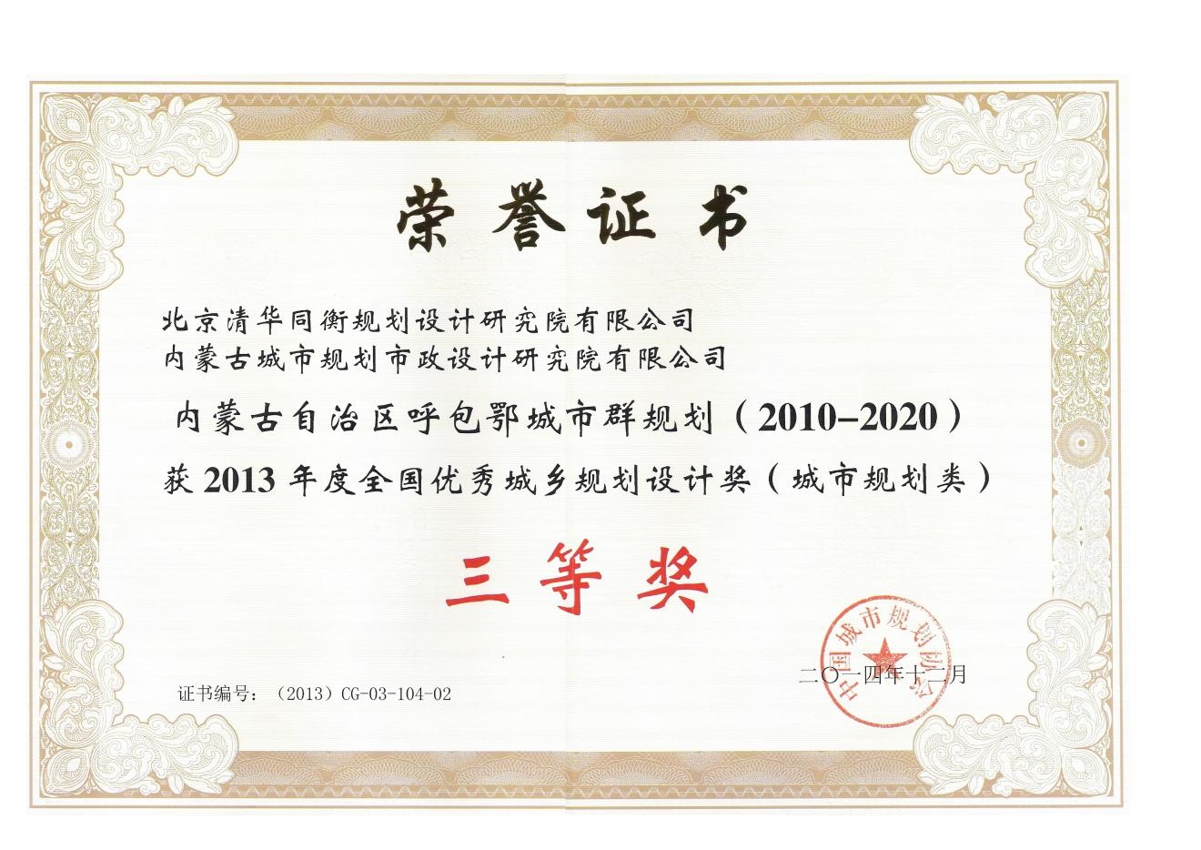 多項榮譽(yù)增彩:榮獲“全國文明單位”“全國住房城鄉(xiāng)建設(shè)系統(tǒng)先進(jìn)集體”“連續(xù)7年A級信用納稅人”等稱號,百余項設(shè)計成果獲國家及自治區(qū)級獎項。其中《呼包鄂城市群規(guī)劃》獲國家優(yōu)秀規(guī)劃設(shè)計三等獎,《內(nèi)蒙古生態(tài)修復(fù)與城市修補(bǔ)課題研究及導(dǎo)則》獲全國優(yōu)秀城市規(guī)劃設(shè)計表揚(yáng)獎。